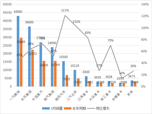5月重卡市場(chǎng)整體銷量如此喜人,那各大主流車企的銷量數(shù)據(jù)又是怎么樣的呢?