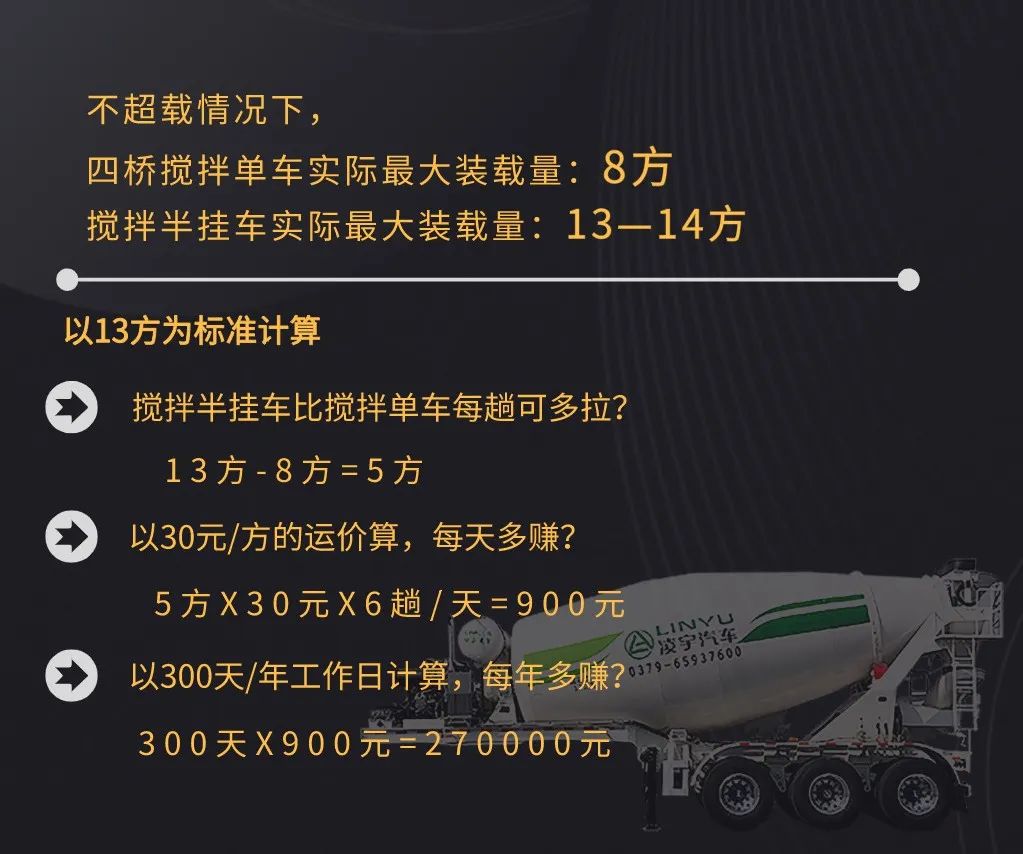 此時(shí),法規(guī)規(guī)定的攪動(dòng)容量可以達(dá)到14方的3軸半掛攪拌車,優(yōu)勢凸顯,成為了市場新寵。