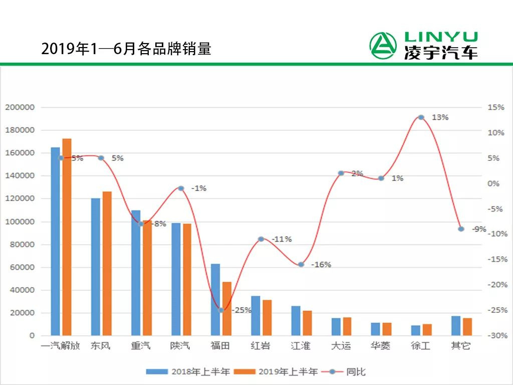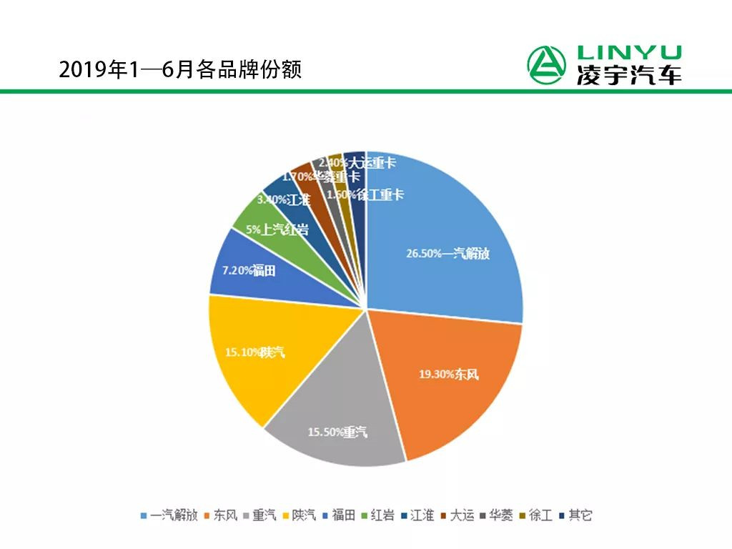 6月份的東風重卡以2.1萬輛的月銷售成績牢牢鎖定銷售亞軍,同比增長2%,上半累計銷售12.63萬輛,同比增長5%,所占市場份額為19.3%,穩(wěn)居行業(yè)二位。