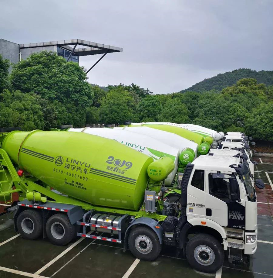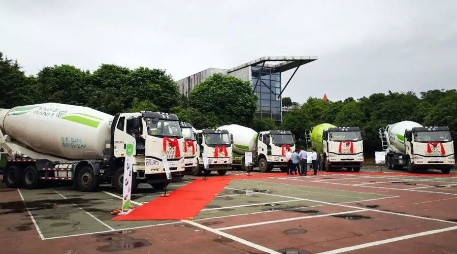5月27日夜,天府之,成功之都,雨后初晴,華燈初上,彎銀月爬上翠綠的玉蘭樹梢,照在了成都博瑞花園酒店的廣場上,廣場上數(shù)臺氣勢非凡的攪拌車呈扇形排列,罐體上綠色“凌宇汽車”的圖案格外醒目,高大威猛的汽解放J6P車頭齊齊指向酒店的大堂。