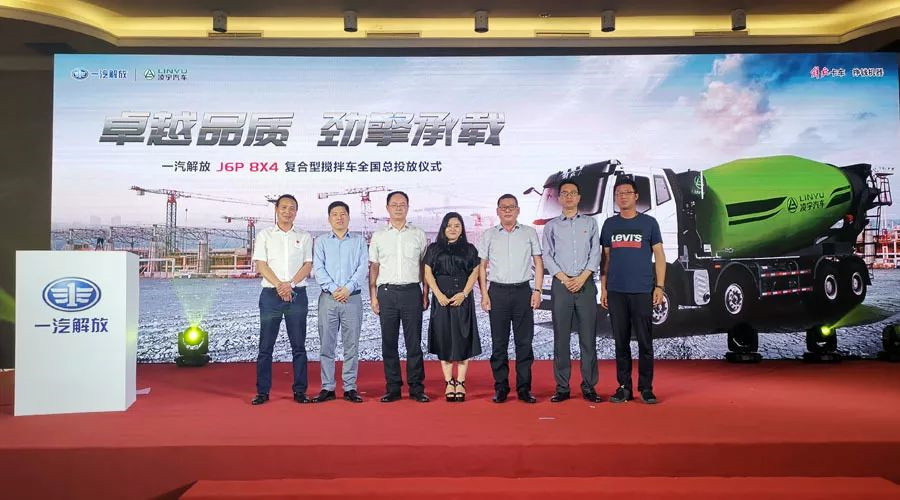 隨后,投放儀式正式開始。汽解放李玉峰、黃功平、姜文卿,中集凌宇胡柏林,四川散協(xié)李正祿,四川巨峰馬菊等六位導(dǎo)共同啟動的發(fā)布儀式的啟動臺?,F(xiàn)場響起了熱烈的掌聲,在所有人的見證下,汽解放J6P 8*4復(fù)合型攪拌車正式發(fā)布。