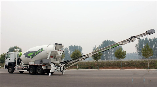 中集凌宇在該產(chǎn)品的研發(fā)過(guò)程中,與國(guó)外廠家聯(lián)合,借鑒國(guó)外技術(shù),并充分結(jié)合*國(guó)情,把國(guó)內(nèi)混凝土運(yùn)輸狀態(tài)以及施工情況進(jìn)行深入分析,對(duì)原有混凝土運(yùn)輸、施工產(chǎn)品進(jìn)行了創(chuàng)新性突破。這款皮帶輸送式自施工攪拌車(chē)的原理是將皮帶輸送設(shè)備與攪拌車(chē)結(jié)合,多段皮帶輸送裝置折疊或伸縮組合成輸送臂,將混凝土輸送至施工地。